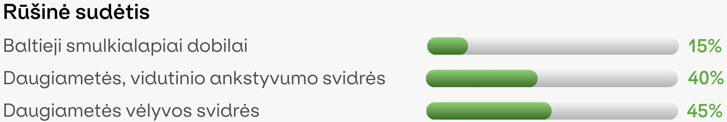 Mišinio pagrindą sudaro ankstyvesnės ir vėlyvesnės brandos daugiametės svidrės (Giant, Kentaur).