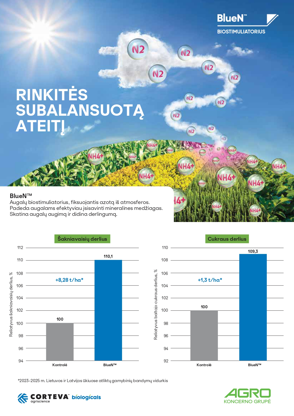 Norite pasiekti maksimalų cukrinių runkelių derlingumą savo ūkyje? „BlueN™“ biostimuliatorius gamybiniuose bandymuose derlių padidino vidutiniškai 8,28 t/ha.