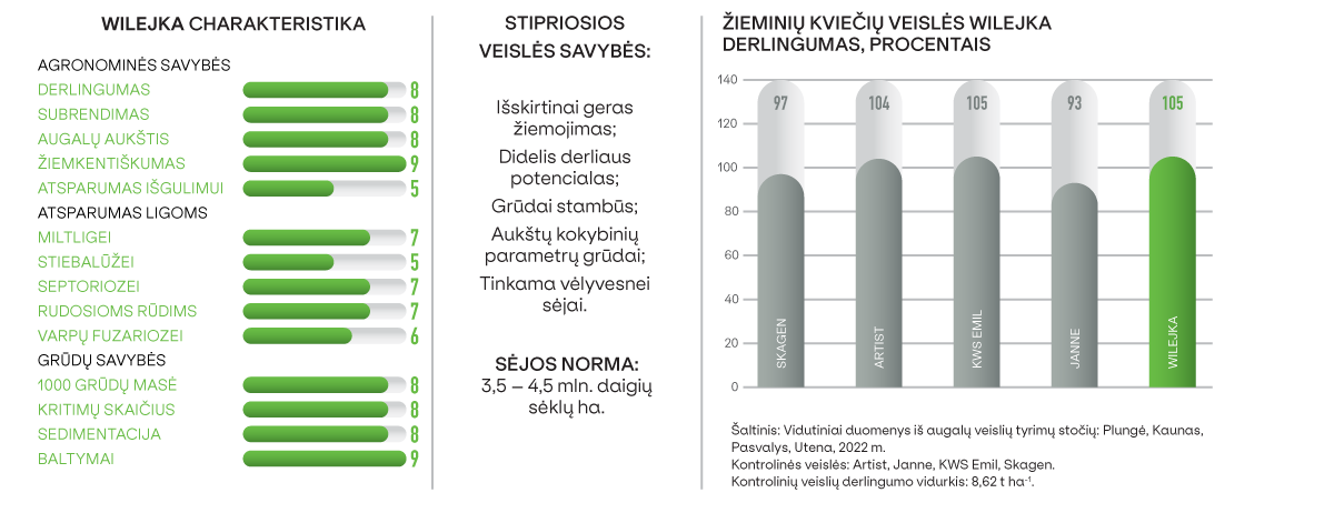 Wilejka – Lenkijoje sukurta žieminių kviečių veislė, tinkama auginti nenašiose, lengvose ir žemesnio pH dirvose. Puikiai žiemoja, formuoja stambius ir aukštos kokybės grūdus, o akuotuotos varpos padeda apsisaugoti nuo laukinių gyvūnų.